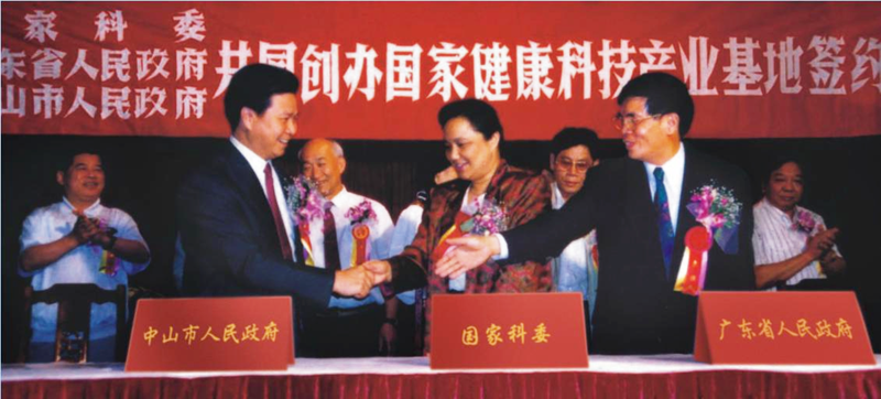 1992年1月,中美兩國在華盛頓聯(lián)合簽署了《關(guān)于知識產(chǎn)權(quán)保護(hù)的諒解備忘錄》。國際環(huán)境的變化,要求中國必須擁有具有自主知識產(chǎn)權(quán)的創(chuàng)新藥物,否則必將在未來的經(jīng)濟(jì)角力中吃虧。而這也同時意味著,在中國建設(shè)一個按照國際創(chuàng)新藥物標(biāo)準(zhǔn)的新藥研究、開發(fā)和生產(chǎn)基地,顯得迫切而重要。有山有水有碼頭、離港澳近的中山贏得了這次機(jī)會。1994年,時任國家科技部副部長鄧楠、廣東省副省長盧鐘鶴、中山市市長湯炳權(quán)分別代表國家科委、廣東省人民政府和中山市人民政府,在中山正式簽署協(xié)議,由三方共建當(dāng)時國內(nèi)唯一的國家級健康科技產(chǎn)業(yè)基地,這標(biāo)志著中國的自主新藥研發(fā)和產(chǎn)業(yè)化從此在健康基地邁入征途。