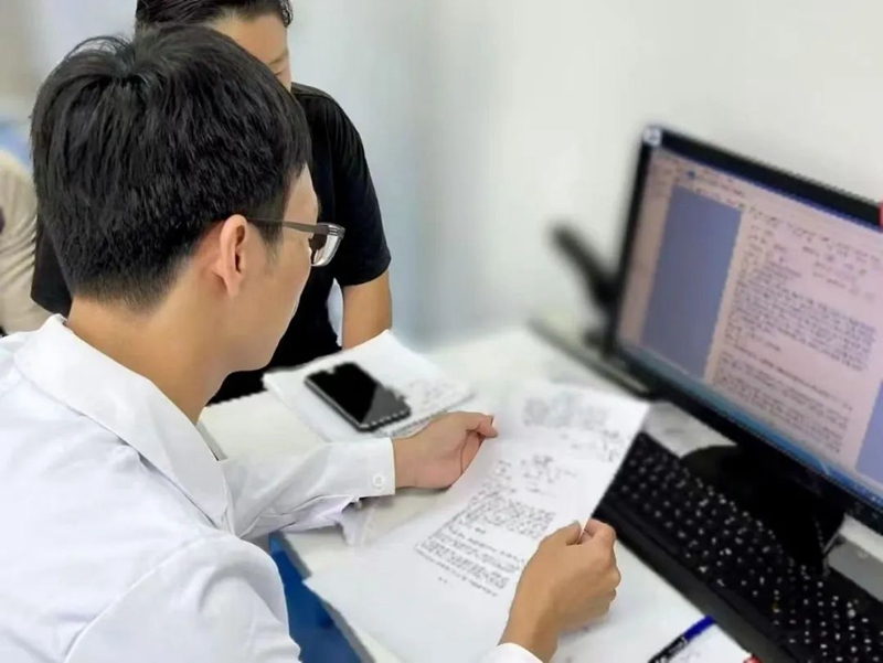 圖:中山大學附屬腫瘤醫(yī)院副主任醫(yī)師洪少東正在為患者開處方