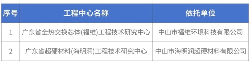 近日,廣東省科學(xué)技術(shù)廳公布了2024年度廣東省工程技術(shù)研究中心認定名單,健康基地園區(qū)兩家企業(yè)中山市福維環(huán)境科技有限公司和中山市海明潤超硬材料有限公司憑借突出技術(shù)創(chuàng)新能力和研發(fā)實力,成功通過認定。
