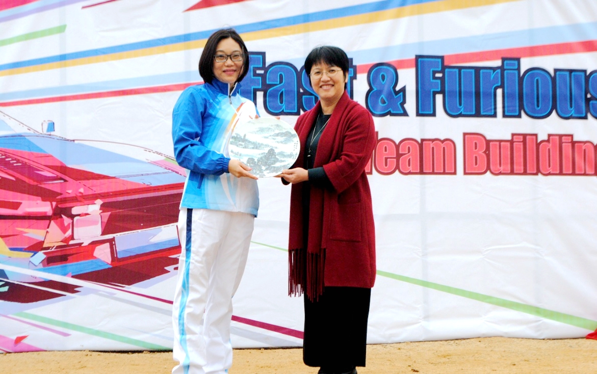 河源市招商局局長(zhǎng)孫宇紅代表市政府向健康基地贈(zèng)送紀(jì)念品